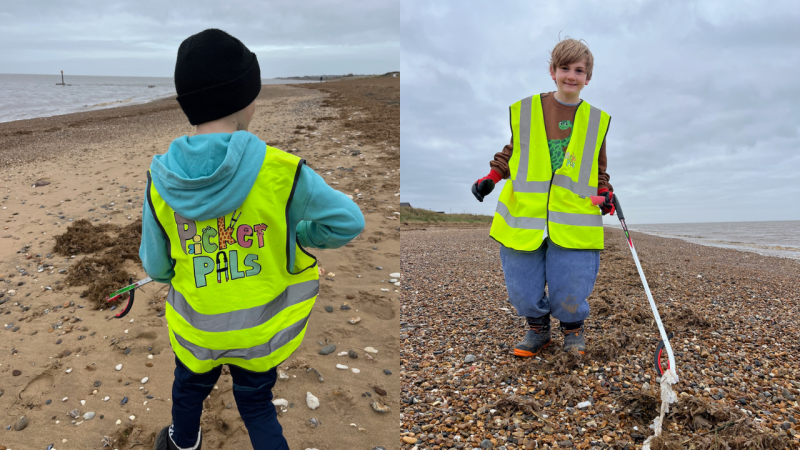 As part of the Picker Pals environmental programme, children in Quintus and their families have volunteered their time to go litter picking . Equipped with their litter picking pack, Benedict and Ted headed to Norfolk and completed a litter pick on the beach over half term.